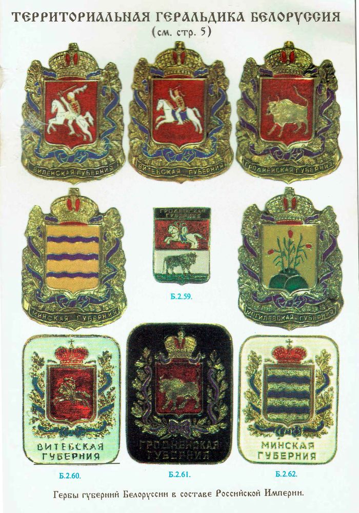 Герб Витебской губернии Высочайше утверждён 8 декабря 1856 года «В червлёном поле серебряный всадник в вооружении, с поднятым мечом и круглым щитом; седло на серебряном коне червлёное, покрытое трёхконечным золотым, с лазуревою каймою, ковром. Щит увенчан Императорскою короною и окружён золотыми дубовыми листьями, соединёнными Андреевскою лентою».